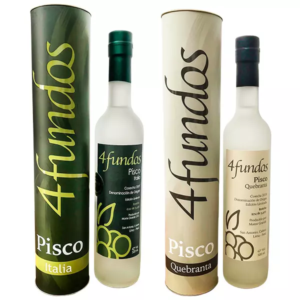 1 botella de Pisco 4 Fundos Italia 500 ml. + 1 botella de Pisco 4 Fundos Quebranta 500 ml.